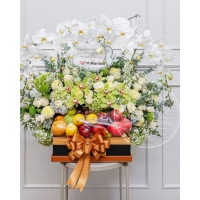 > ARRANGEMENTS > Cake, Fruit & Wine